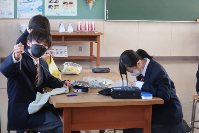 「エコバッグ」の製作に取り組んでいました。作業の手順をしっかり確認しながらも決められた時間での完成を目指し、急ピッチで作業を行っていました。