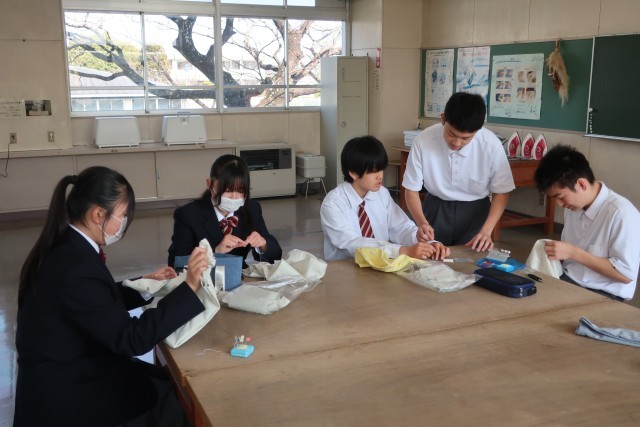 「エコバッグ」の製作に取り組んでいました。作業の手順をしっかり確認しながらも決められた時間での完成を目指し、急ピッチで作業を行っていました。