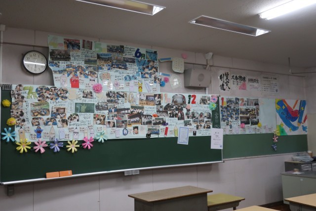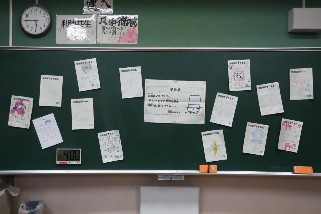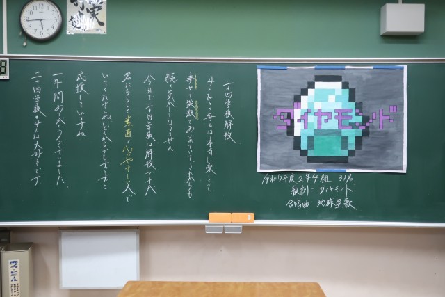 各クラスの黒板や生徒の机には、担任から最後のメッセージが添えられていました。