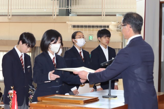 3/25 令和7年度 修了式 7 公開日 2026/03/26 更新日 2026/03/26 学校行事 昨日行われた各種表彰・修了式の様子をお届けします。続いて、部活動をはじめとした各種表彰の披露です。学校内外の活動で、たくさんの生徒が頑張っていることが分かります。