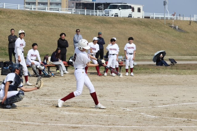 春の大会を前に、冬場の練習成果を確認するために開催されたものです。今回の試合では打撃が好調でしたが、守備面での課題も見つかりました。得点を重ねミスを減らす練習に今後は取り組んでいきたいと思います。