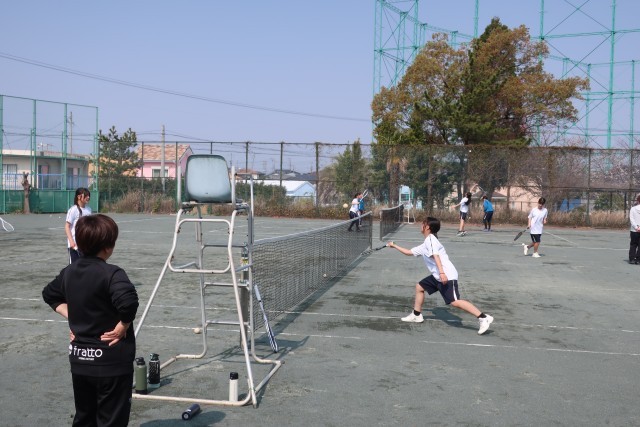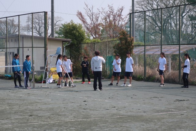 春の大会に向け、基礎メニューにしっかり取り組み、自身と技能を高めています。活動中の元気な声が、運動場の南端のテニスコートから校舎まで聞こえてくるほどでした。