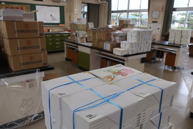 業者さんが新年度から使用する教科書の搬入を行ってくださいました。