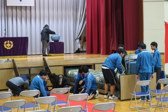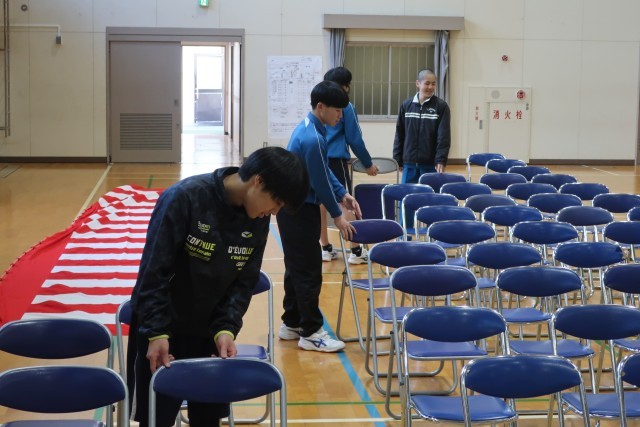 入学式・始業式の会場となる体育館のセッティング、1年生教室の飾りつけ、各クラスへの教科書の配布など、それぞれの分担でしっかりと活動していました。