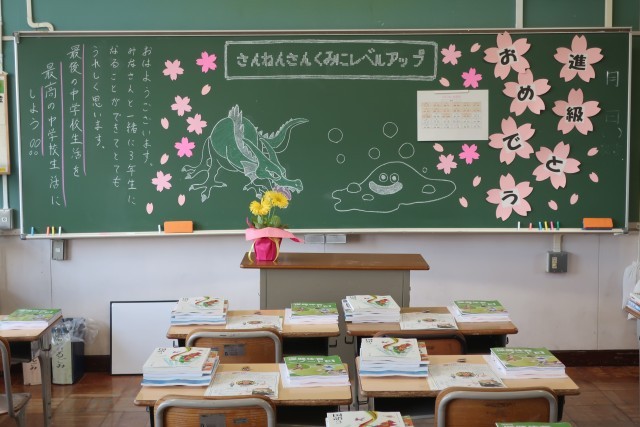 学級開きで生徒たちと最高の出会いをしようと、担任が準備した3年生の教室です。
