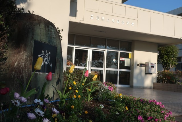 1棟南側、運動場に面した場所に、「ダウニー・シャッドブッシュ」という花木が植わっています。現在は小さな白い花を付け、生徒たちの登下校や活動を見守ってくれています。