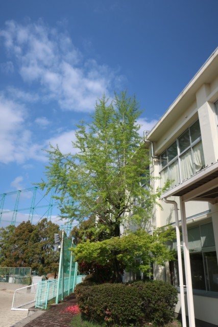 校内を見渡すと、葉が一つもなかった木々の枝には、鮮やかな緑の葉が付きはじめ、まさに新緑の季節となっています。