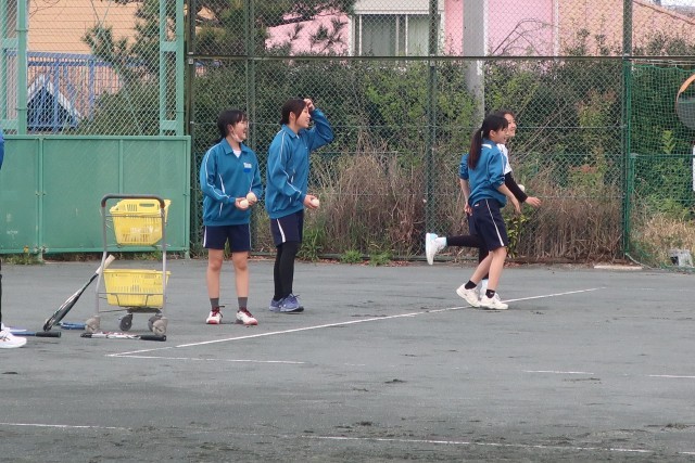 翌日の大会(団体戦)に向け、最後の調整です。地域指導者の熱心な指導に、生徒たちも元気よく応えていました。