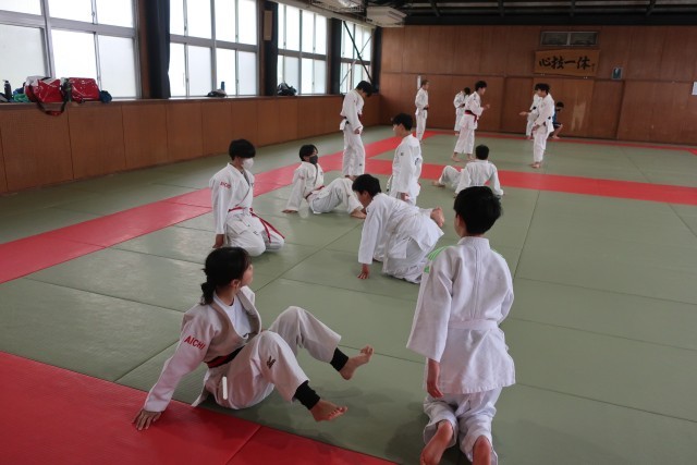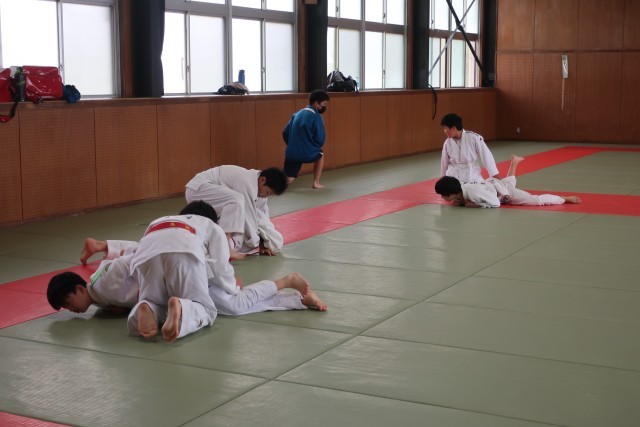 久しぶりの休日の活動です。高校生(本校卒業生)も駆けつけ、一緒に稽古に取り組んでいました。