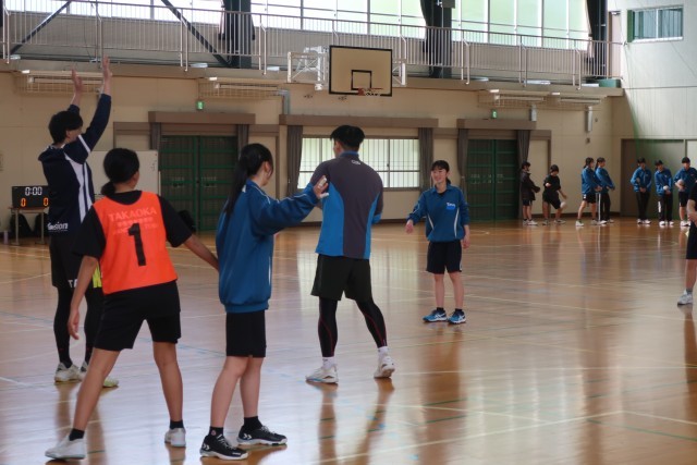 地域指導者の熱心な指導の下、生徒たちも笑顔で活動していました。ポジションごとに分かれ、様々なパターンのシュートを練習したり、攻撃の確認を行ったりしていました。