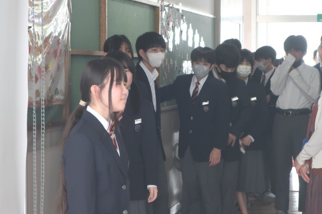 本日、生徒手帳用の個人写真の撮影が行われました。廊下の一角で、いつもお世話になっている写真屋さんに撮影していただきました。