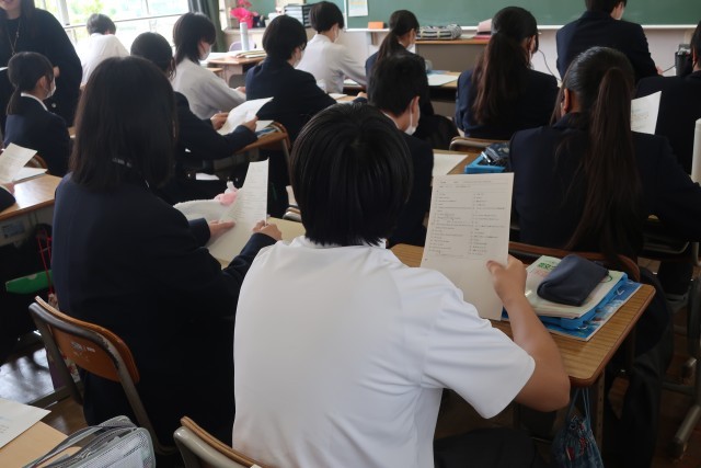 1年間の学習の見通し、進路を意識した学習の仕方などを確認していました。