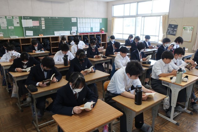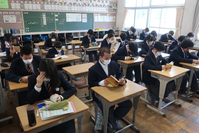 朝の活動「朝読書」、2年生の様子です。