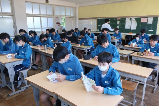 全員が入室完了時間を守り、各自の興味のある本を持ち寄り、読書に向かっています。