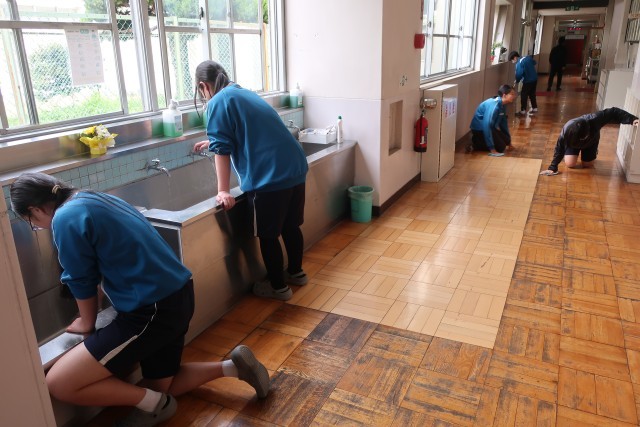 毎日行われる清掃活動。限られた時間での清掃活動。