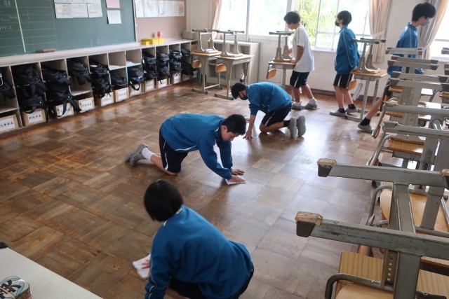 毎日行われる清掃活動。限られた時間での清掃活動。