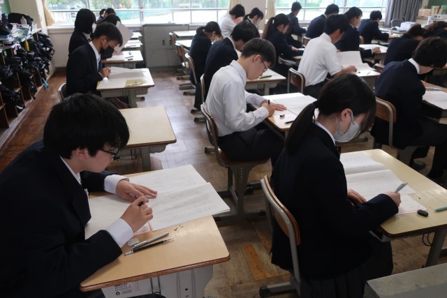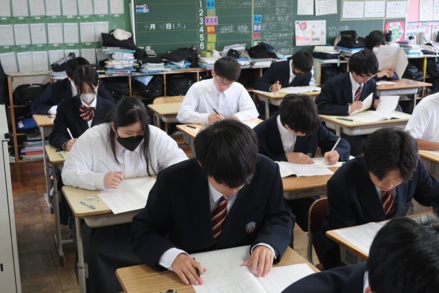 「全国学力・学習状況調査」に取り組む3年2組の様子です。