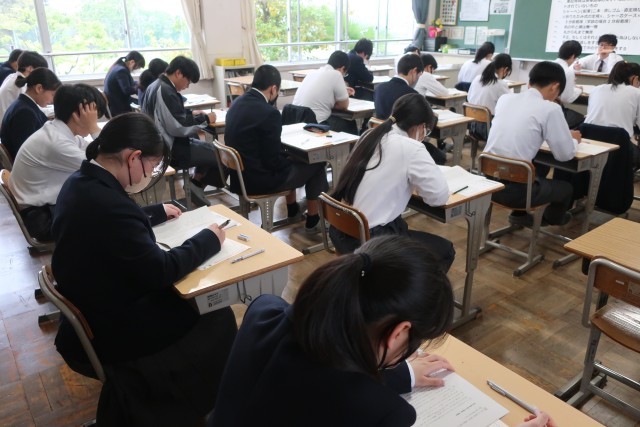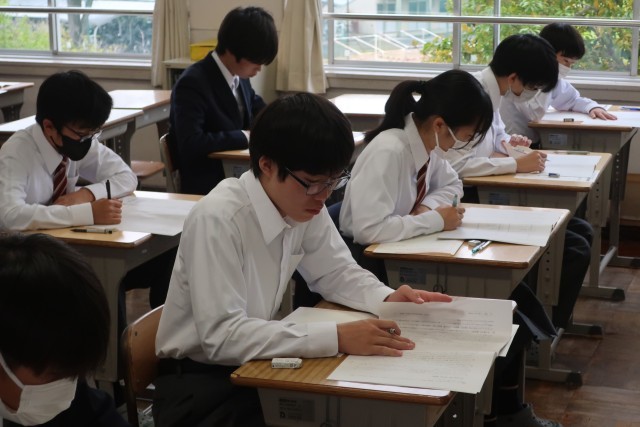 「全国学力・学習状況調査」に取り組む3年3組の様子です。