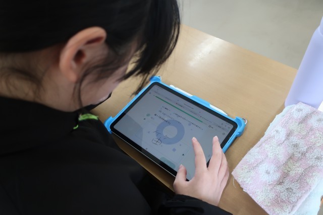 学習用タブレットのアプリを使って、漢字や言葉の並べ替えなど、各自の課題に黙々と取り組んでいました。