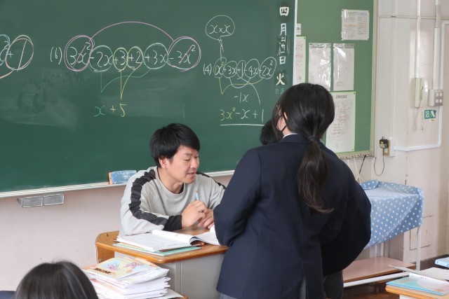 1年生の学習の復習に取り組んでいました。仲間同士の教え合いもとてもスムーズに行われていました。