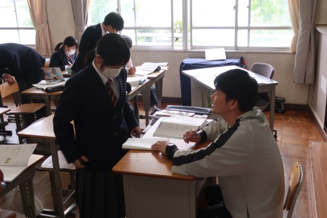 4/24 2-3 しっかりと復習 3 公開日 2026/04/24 更新日 2026/04/24 各学年から 2年3組の数学の授業の様子です。1年生の学習の復習に取り組んでいました。仲間同士の教え合いもとてもスムーズに行われていました。