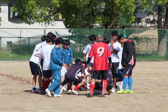 翌日のリーグ戦に備え、攻めや守りの重要な部分を確認していました。頻繁に作戦盤を囲み、チームの約束事を意識して練習していました。