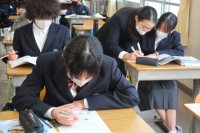 2年1組の英語の授業の様子です。富士山の魅力について書かれた教科書本文のリーディ...