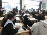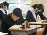3年2組の理科の授業の様子です。 入試対策に取り組んでいました。これまで解い...