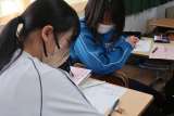 2年4組の家庭科の授業の様子です。 調理実習に向けて、「肉の性質を理解して、...