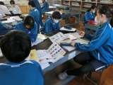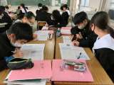 昨日の3年5組の美術の授業の様子です。 点描画での作品「万年カレンダー」の制...