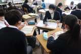 2年2組の数学の授業の様子です。 確率の学習で、次第に複雑になるパターンを根...