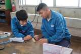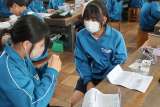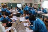 2年4組の技術科の授業の様子です。 ダイナモラジオの製作で、電子回路に部品を...