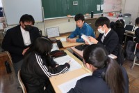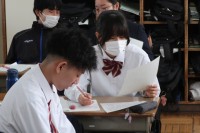 3年3組の英語の授業の様子です。単元のまとめのプリントに取り組み、問題の解き方の...