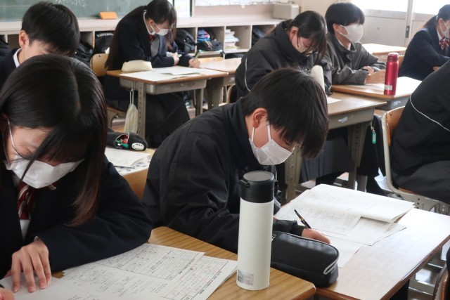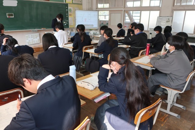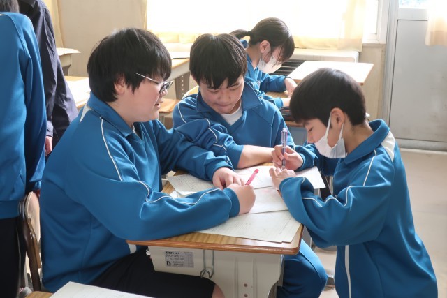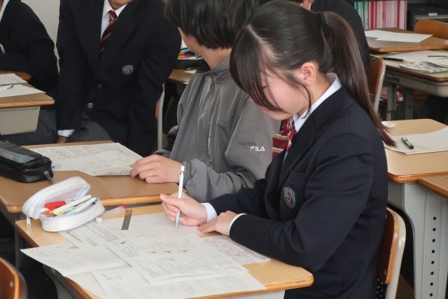 1年4組の社会の授業の様子です。テストが返却され、解説が行われていました。授業で...