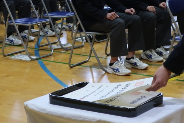 本日の卒業式予行練習(全校練習)の時に行われた『高中賞』授与の様子です。 「高中...