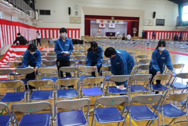 感動的な卒業式の裏には、前日の1,2年生の献身的な活動があります。後輩たちの会場...