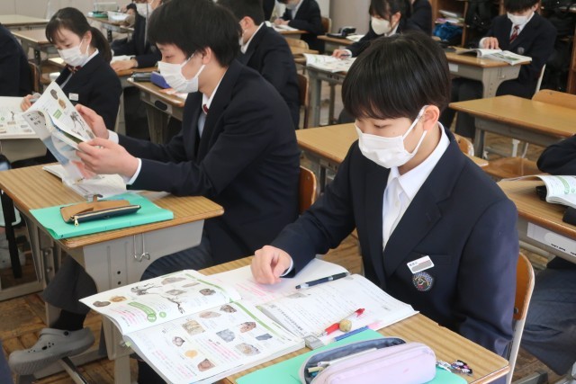1年1組の理科の授業の様子です。「地層から読み取れることを考えよう」をテーマに、...