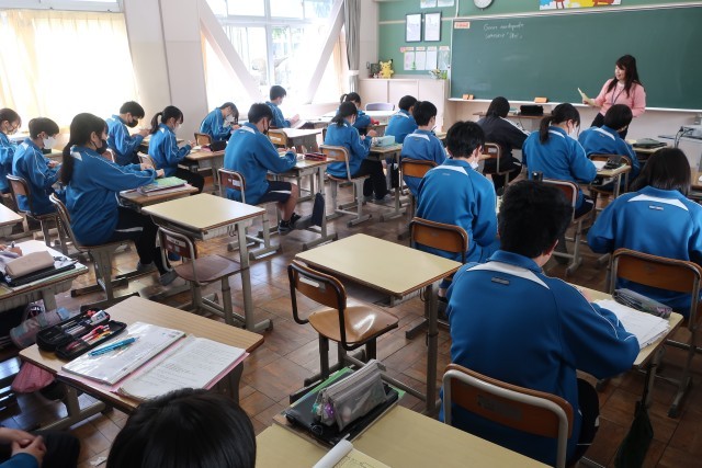 1年3組の英語の授業の様子です。教科書本文のリーディングに取り組んでいました。教...