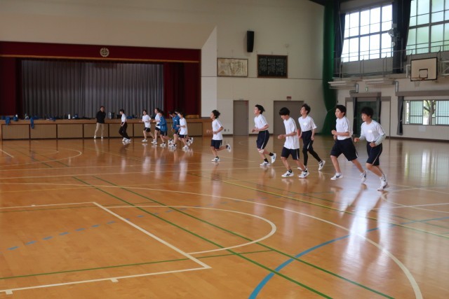 2年2組の体育の授業の様子です。体力テストのシャトルランの計測が行われていました...