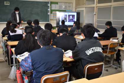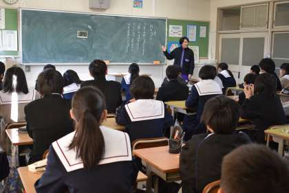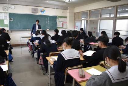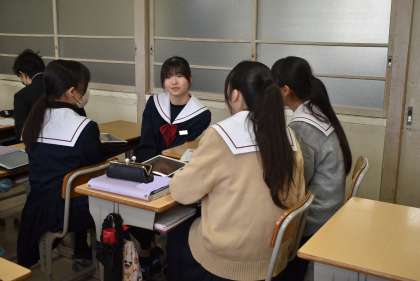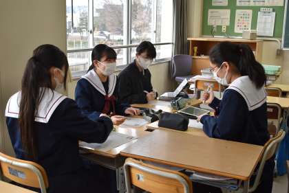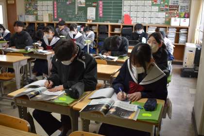 1年1組で国語の研究授業を行いました。生徒一人ひとりが「少年の日の思い出」という物語のつづきを創作し、より良い表現になるように班の仲間と推敲し合いました。湖や月、雨や大地の様子の変化など、あえて情景描写を用いることで、登場人物の心情の変化を上手に表現していました。