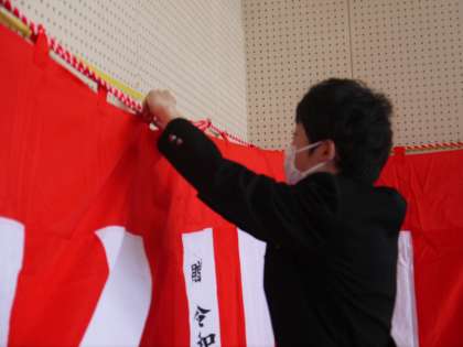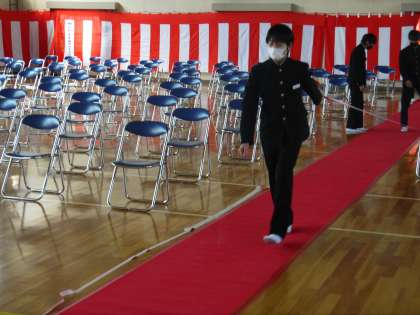4/7(木) 3年生の有志が入学式会場の片づけを行いました 1