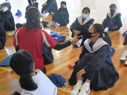 本日、豊田市交通安全学習センターの方が2名来校し、1年生に交通安全について話をしました。学区の危険な箇所(見通しの悪い場所等)を映像で確認したり、自転車の安全な乗り方について生徒に運転してもらいながらわかりやすく説明したりと、安全について考えることができる交通安全教室となりました。