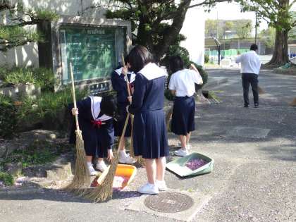 正門前の清掃を行っていました。おかげで、とてもきれいになりました。ありがとうございます。