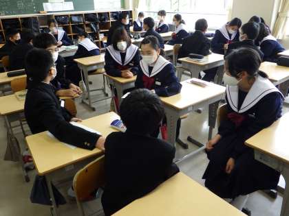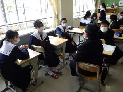 4/19(火) 朝の会の様子です(1年生) 2 公開日 2022/04/19 更新日 2022/04/19 お知らせ 12学級の朝の会の様子です。 班会議を行い、今日の目標を班員で話し合っていました。班員で時間割を見ながら、意見を出し合っていました。