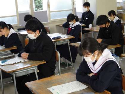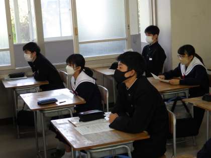 21学級は、美術の「授業開き」の様子です。美術室の使い方、持ち物などの説明を集中して聞いていました。