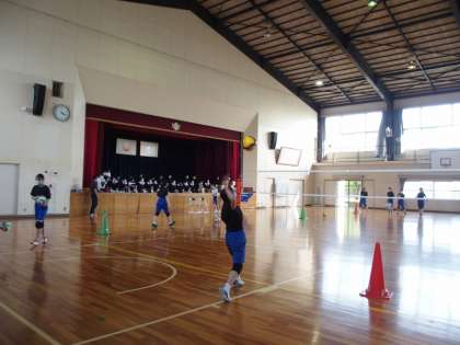 情報科学部、バレーボール、バスケットボール部の見学です。みんな真剣なまなざしでした。希望の部活動は決まったかな?