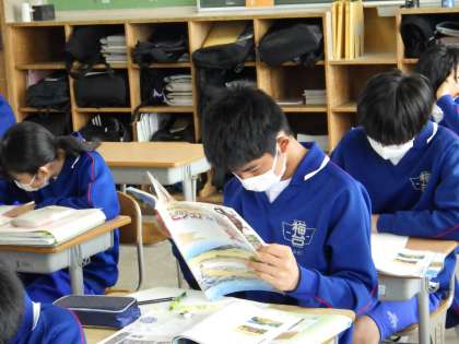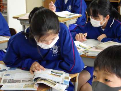 22学級は、社会の「ヨーロッパ世界の拡大」の授業の様子です。教科書や資料集の資料を見ながら、大航海時代のスペイン、ポルトガルの海外進出の理由等について、理解を深めていました。