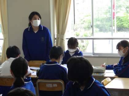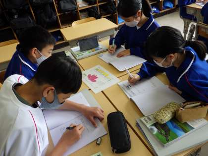 12学級は、理科の「種子をつくる植物」の授業の様子です。花のどの部分が果実になるのかをアブラナとツツジの共通点と相違点を比べながら、考えていました。
