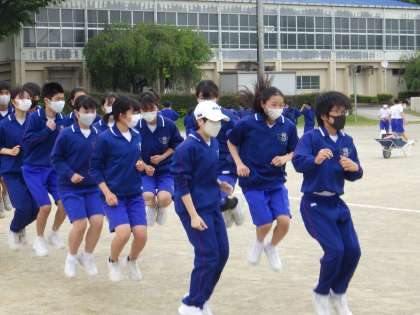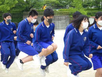 34学級は、体育の授業の様子です。体育祭種目である大繩の練習を行っていました。
