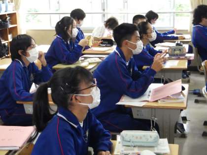 32学級は、国語の様子です。「握手」の単元テストを返却後、間違いが多かった問題を中心に解き方の確認をしていました。